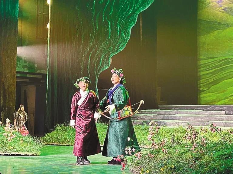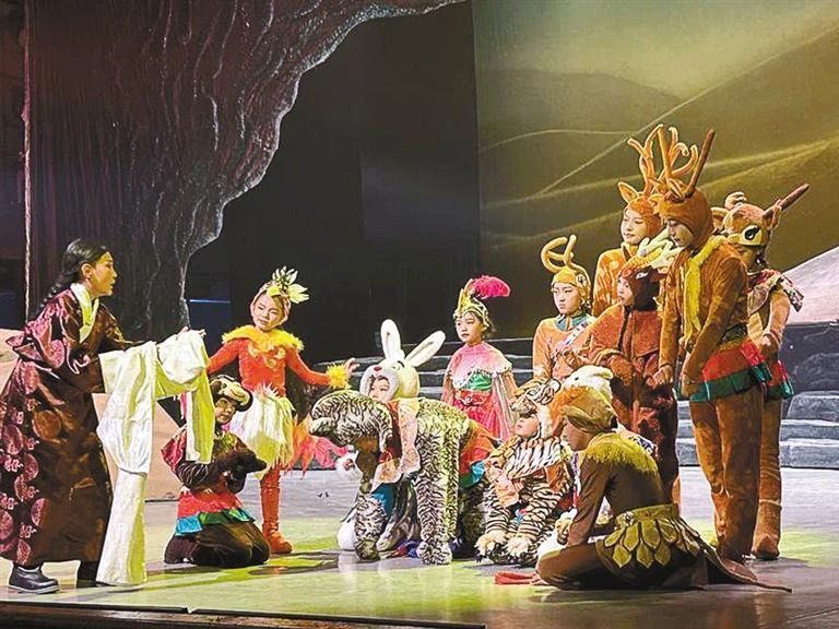 (來源:《西藏日?qǐng)?bào)》2025年3月13日第5版,文/圖:曉勇、馮琳琳,圖片均為少兒舞臺(tái)劇藏戲《頓月頓珠》劇照)
