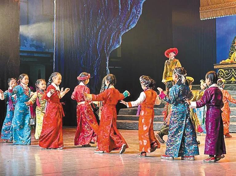 用少兒舞臺(tái)劇藏戲《頓月頓珠》導(dǎo)演之一云登羅布的話說:“從最初的‘摸著石頭過河’,到2023年雪頓節(jié)首演大獲成功,再到如今公演,主創(chuàng)團(tuán)隊(duì)對(duì)孩子們的要求再度提升——要在表演細(xì)節(jié)上做功課,在舞臺(tái)上真唱真說真情表演。他們都做到了,他們是了不起的!”
