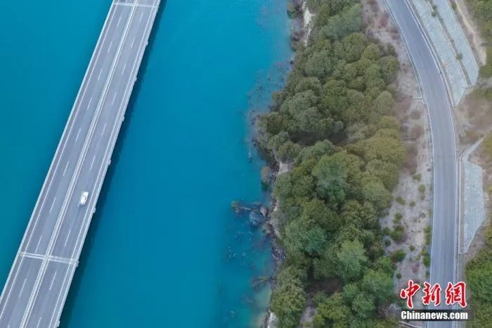 資料圖:拉林高等級公路全長409.2公里,建在平均海拔3000多米的高原上,是世界上“顏值最高”的高等級公路之一。(無人機(jī)照片)中新社記者貢嘎來松攝