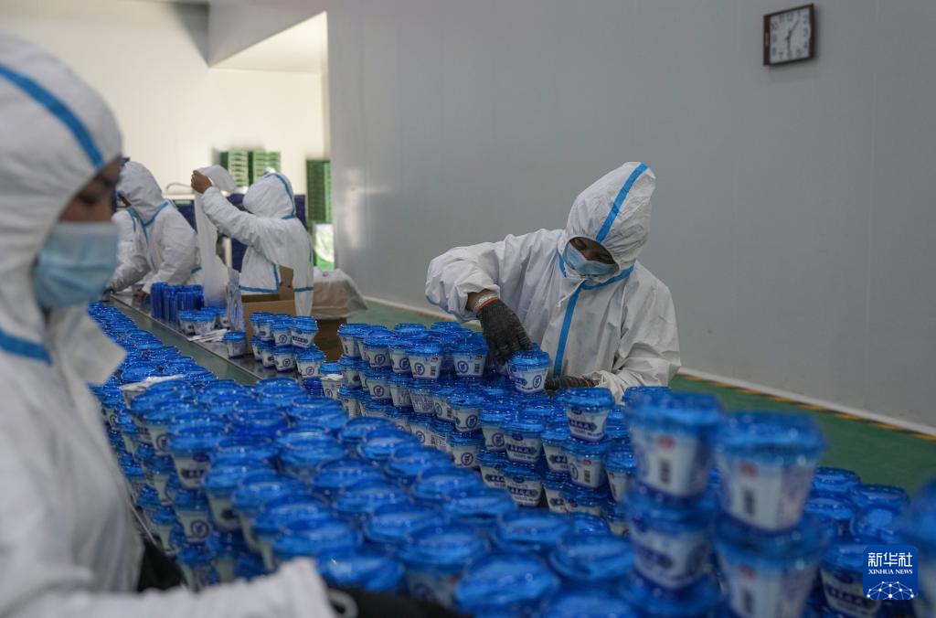 西藏乳制品龍頭企業(yè)藏地吉龍農(nóng)業(yè)開發(fā)有限公司員工在檢查乳制品包裝情況(3月5日攝)。新華社記者晉美多吉攝
