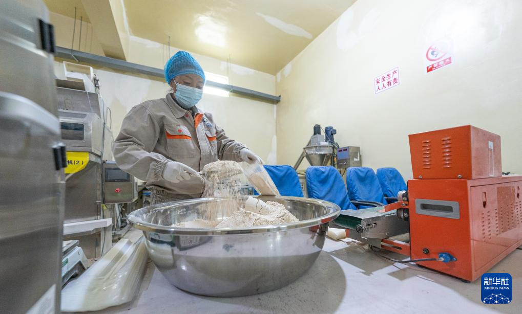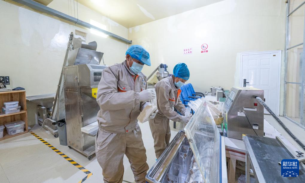 拉薩市堆龍德慶區(qū)古榮巴熱糌粑有限公司員工在打包糌粑(3月7日攝)。新華社記者丁增尼達(dá)攝