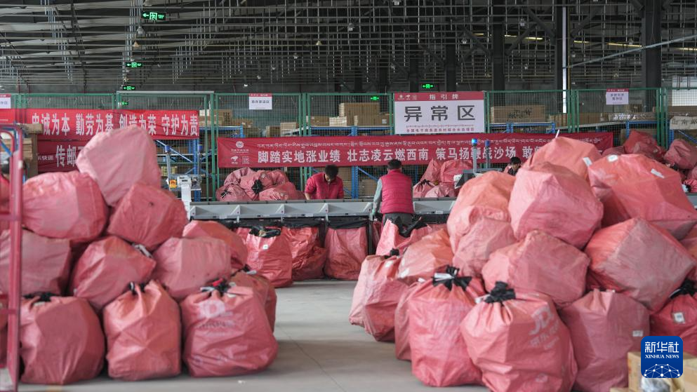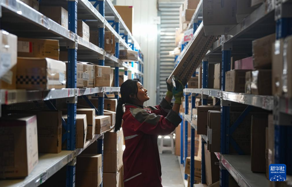 在位于堆龍德慶區(qū)近郊的拉薩城投物流園區(qū),京東物流工作人員在分揀商品(3月5日攝)。新華社記者晉美多吉攝