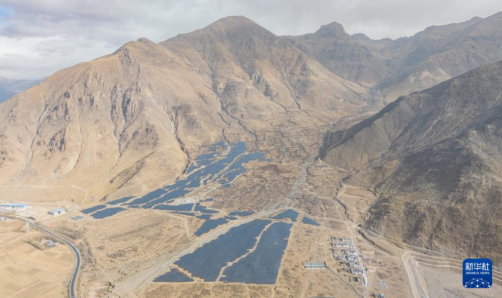 這是位于拉薩市堆龍德慶區(qū)的中核(西藏)能源發(fā)展有限公司40兆瓦光伏發(fā)電站(3月7日攝,無人機(jī)照片)。新華社記者丁增尼達(dá)攝