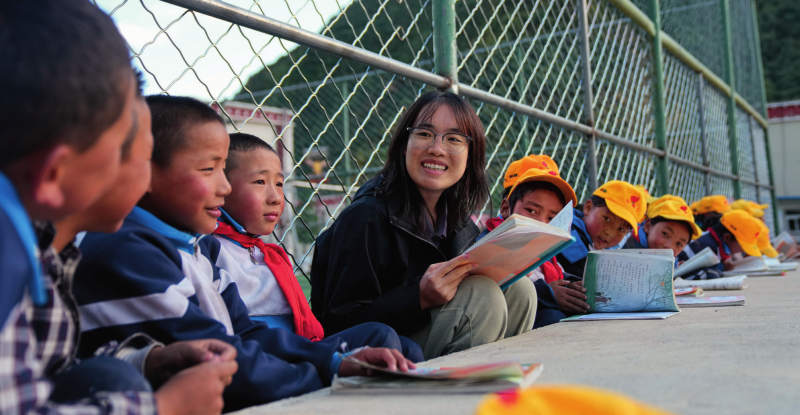 在西藏林芝市工布江達(dá)縣娘蒲鄉(xiāng)中心小學(xué),嶺南師范學(xué)院支教隊(duì)隊(duì)員涂建枝在晚自習(xí)前和孩子們一起溫習(xí)功課(2024年9月3日攝)劉洲鵬攝