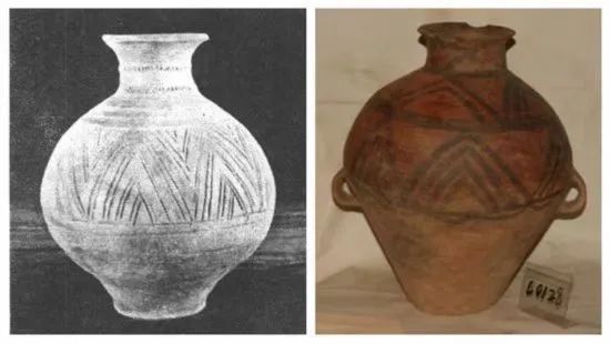 ▲左圖為卡若遺址出土的陶罐。(圖片來源:翻拍自《昌都卡若》考古發(fā)掘報告);右圖為甘肅馬家窯文化三角折線紋彩陶壺。(圖片來源:馬家窯文化官網(wǎng))