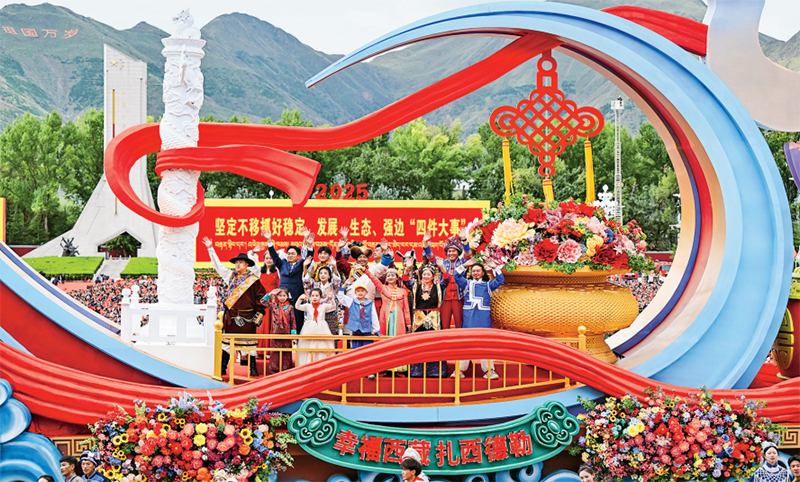 2025年8月21日上午,西藏各族各界干部群眾約2萬人歡聚拉薩市布達(dá)拉宮廣場,熱烈慶祝西藏自治區(qū)成立60周年。圖為游行的彩車通過布達(dá)拉宮廣場。新華社記者謝環(huán)馳/攝