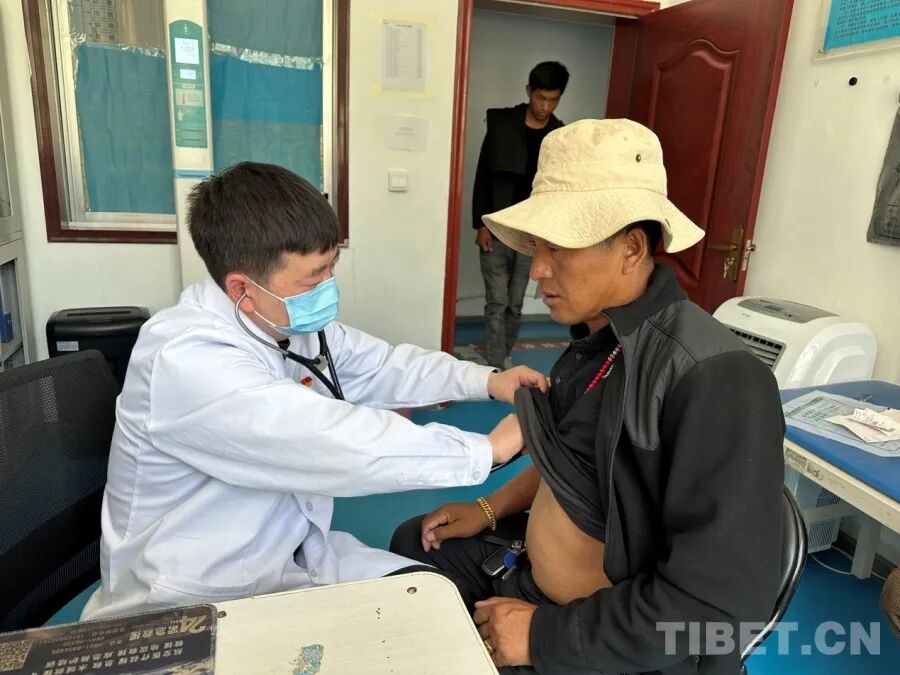 圖為河北省定州市人民醫(yī)院援藏醫(yī)生邊晨峰在西藏為病人檢查