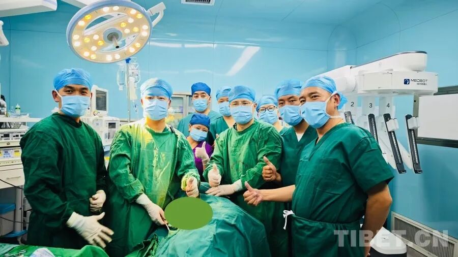 圖為那曲市人民醫(yī)院手術(shù)室內(nèi)成功完成全球首例海拔4500米以上5G遠(yuǎn)程機(jī)器人手術(shù)