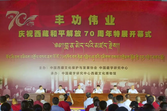 2021年6月29日,由中國(guó)西藏文化保護(hù)與發(fā)展協(xié)會(huì)、中國(guó)藏學(xué)研究中心主辦的“豐功偉業(yè)——慶祝西藏和平解放70周年特展”在中國(guó)藏學(xué)研究中心西藏文化博物館開(kāi)幕。